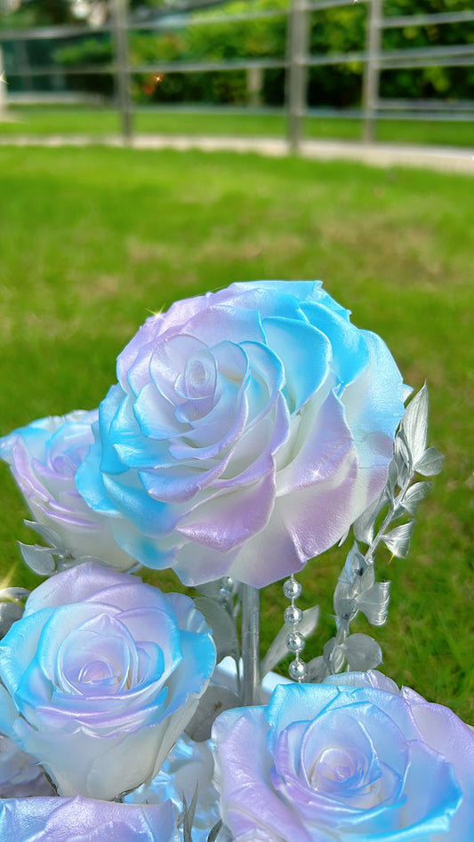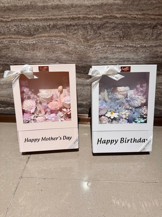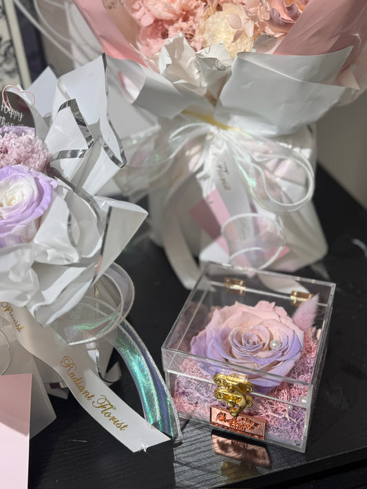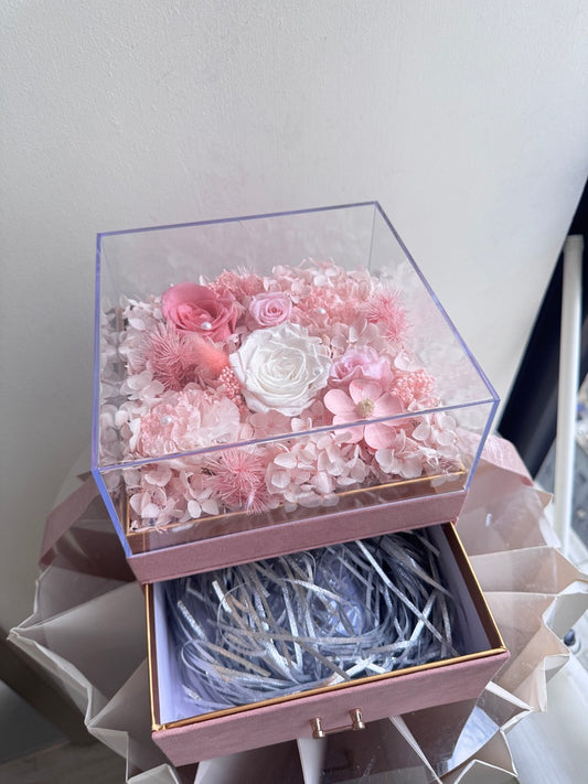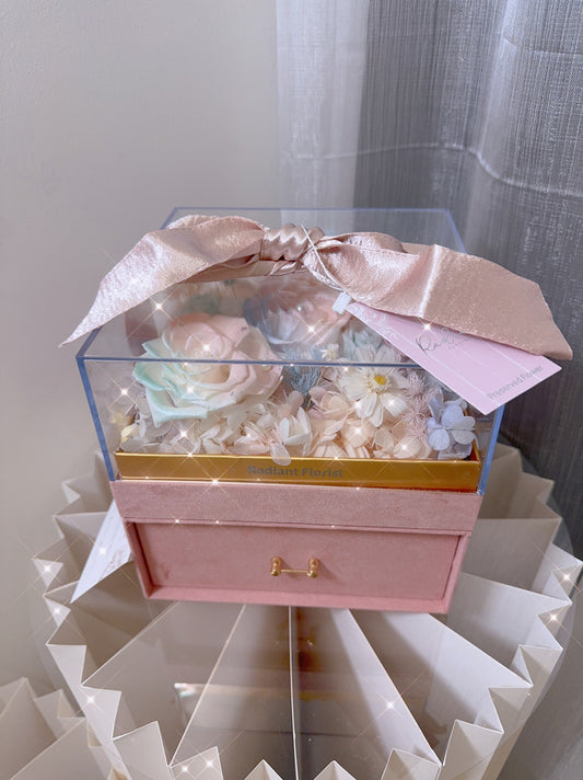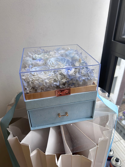 Radiant夢幻雙層永生花盒 藍白色 粉白色