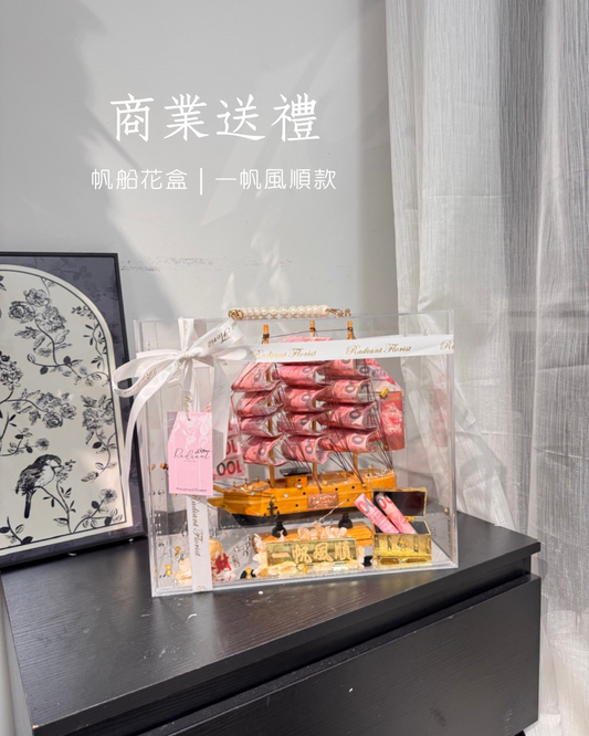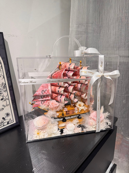 普通款| 順風順水永生花鈔票帆船禮盒🎁單面花花款