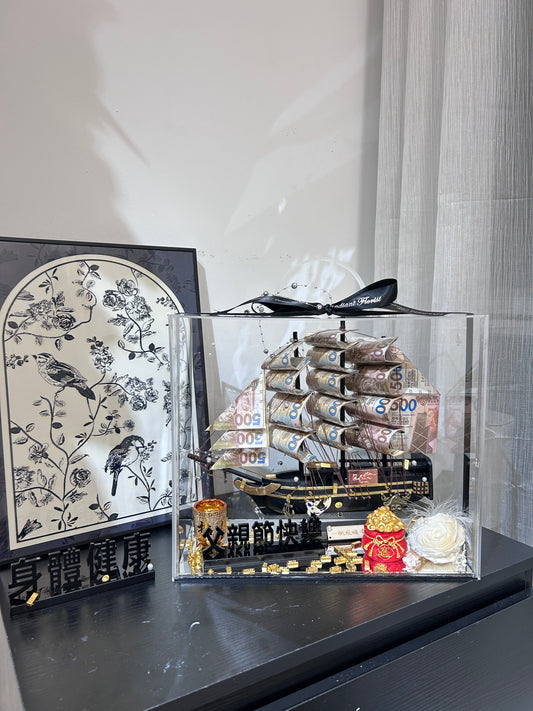 順風順水永生花鈔票帆船禮盒🎁單面花花款