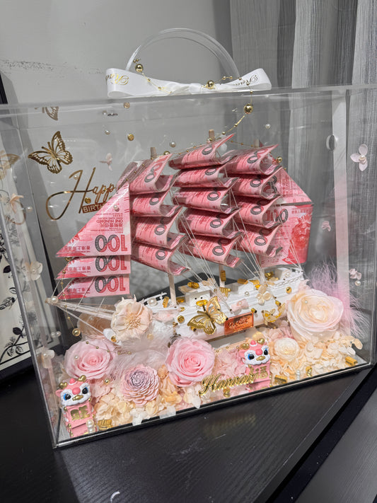 順風順水永生花鈔票帆船禮盒🎁單面花花款