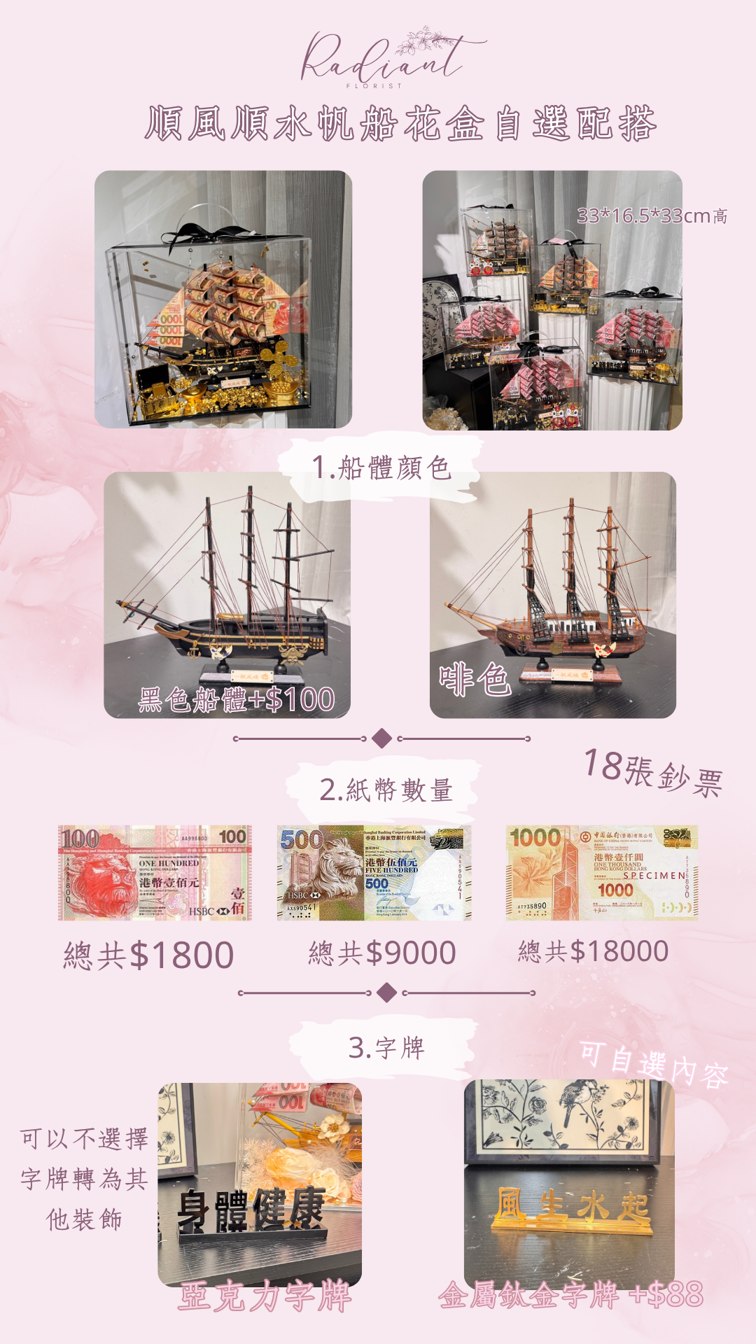 普通款🎁 帆船永生花鈔票禮盒|財源滾滾