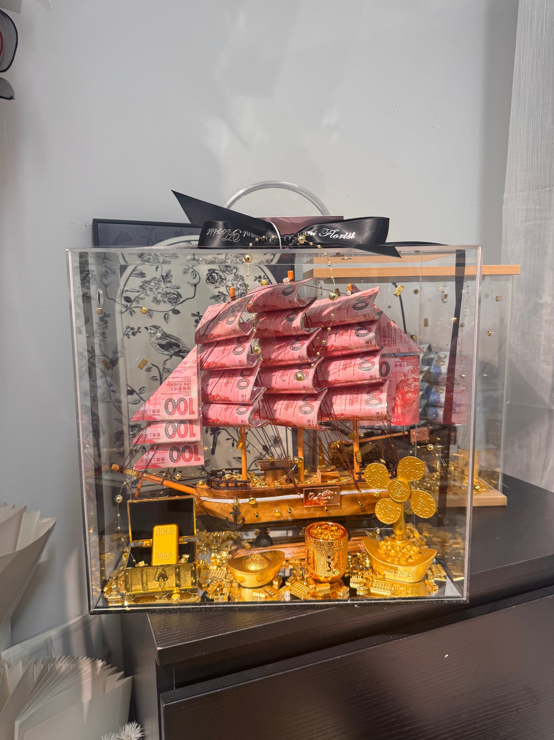 🎁 帆船永生花鈔票禮盒|財源滾滾