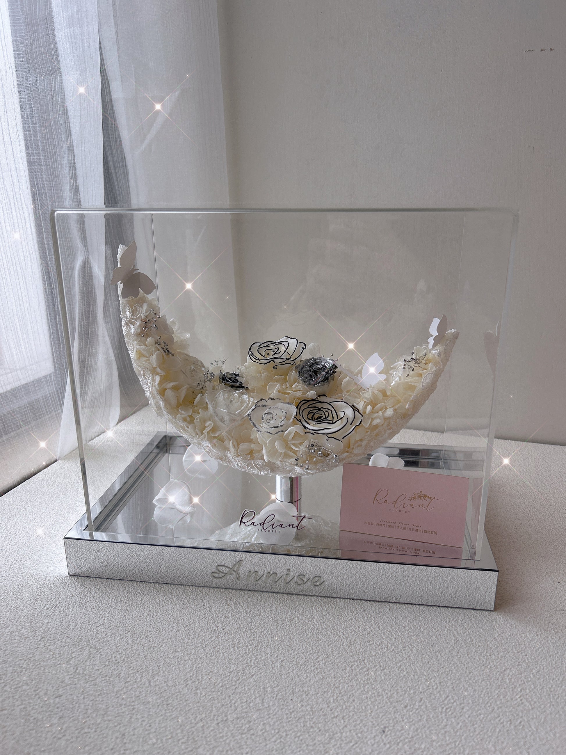 月亮造型永生花擺設 數量增加