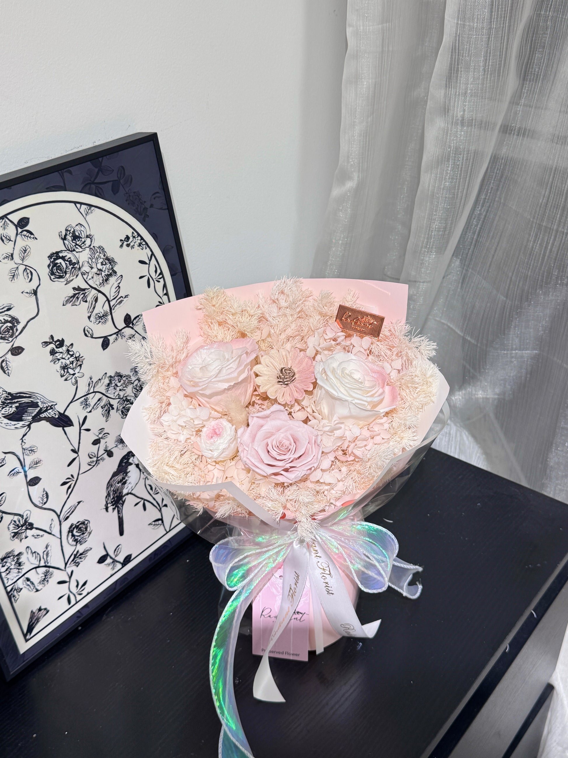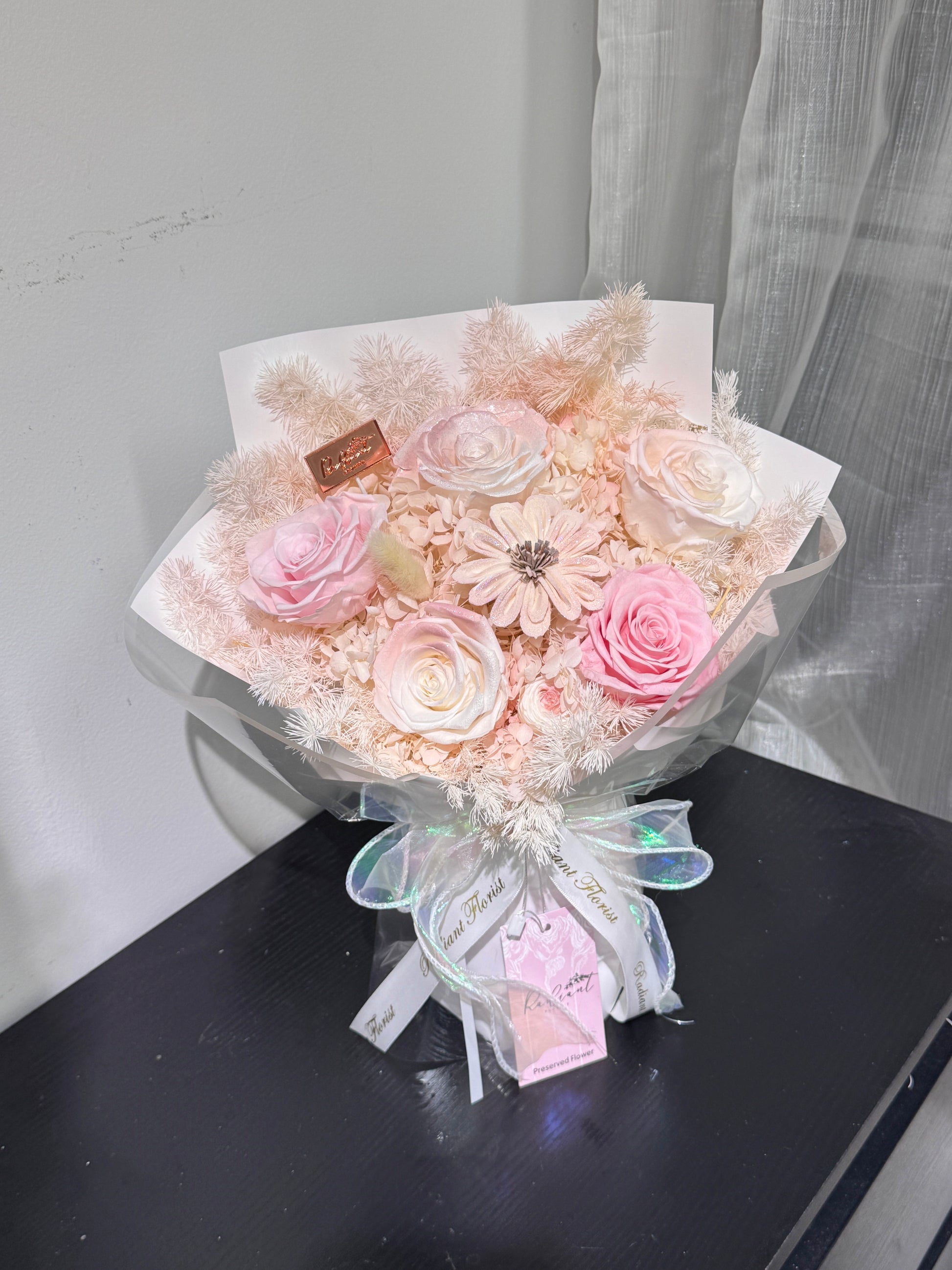 今次採用鑽石玫瑰,比起平時嘅珠光玫瑰更加閃!鑽石玫瑰實物真係超級無敵爆炸靚!