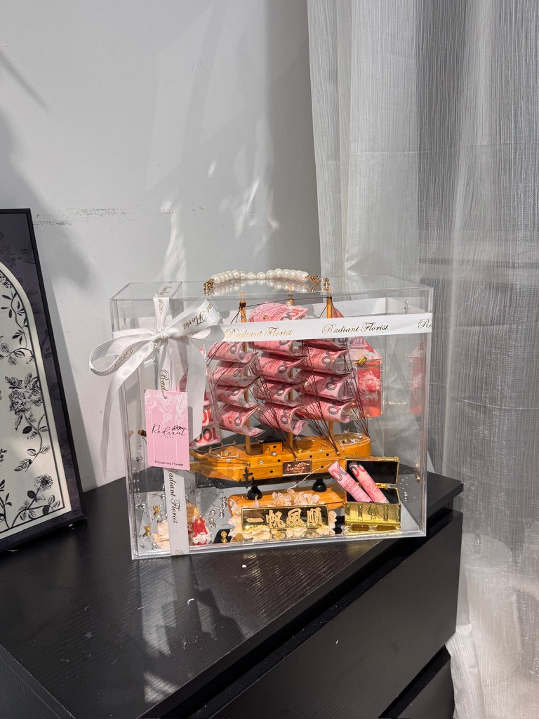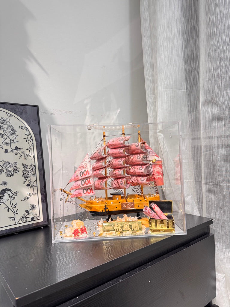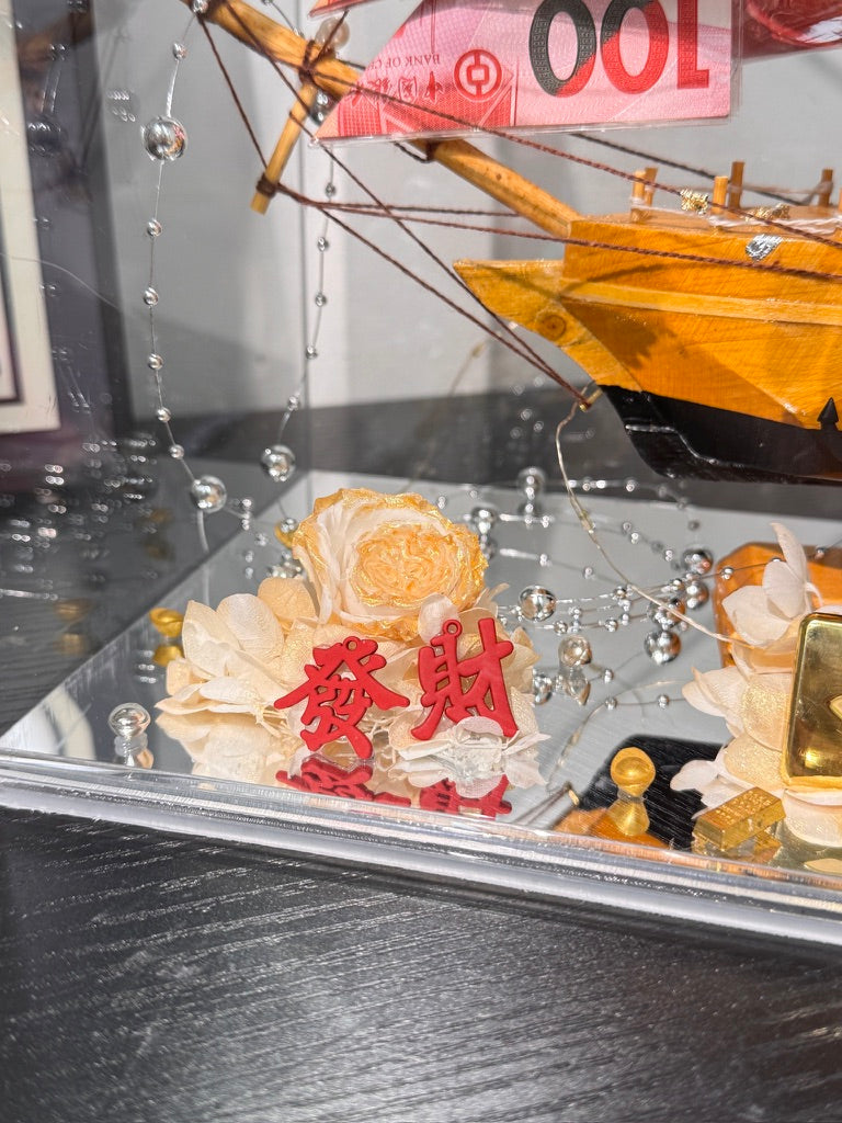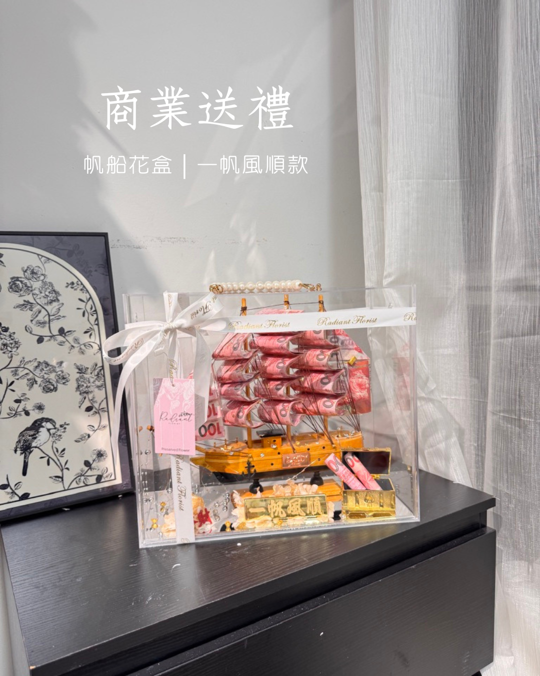 🎁 帆船永生花鈔票禮盒|一帆風順字牌