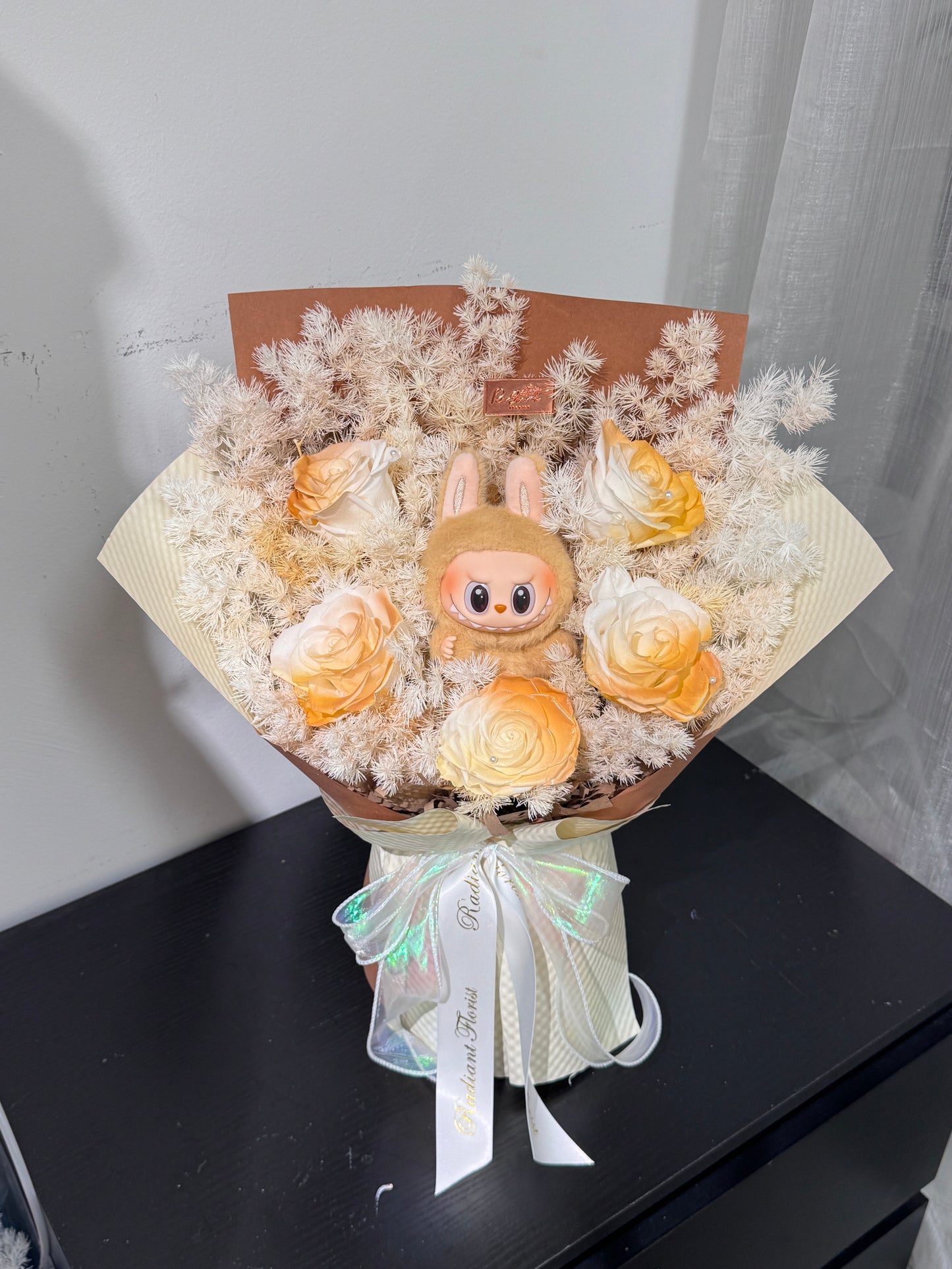 限量💥 Labubu 永生花束 眼巴巴焦糖色