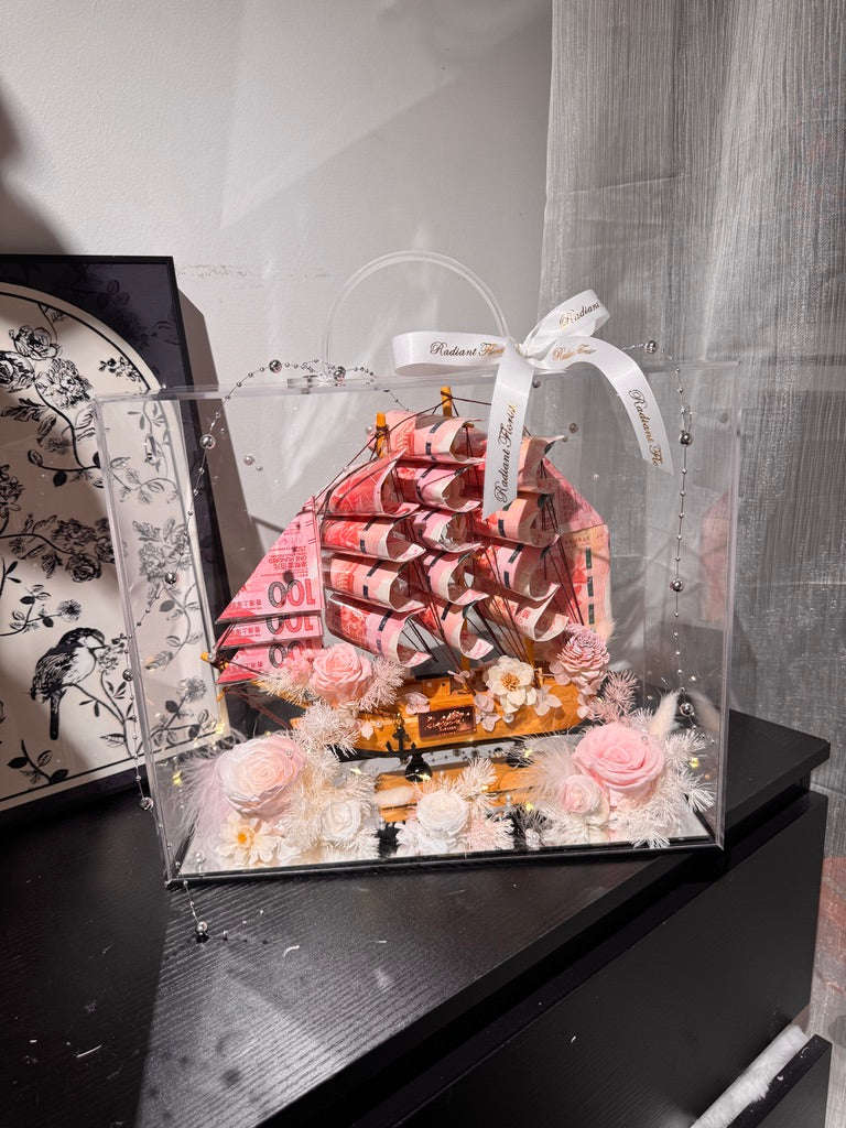 普通款| 順風順水永生花鈔票帆船禮盒🎁單面花花款