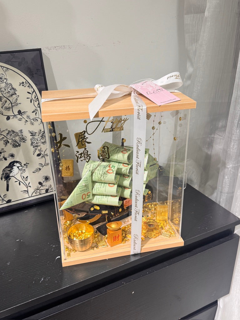 🎁燈箱款 帆船永生花鈔票禮盒|細size