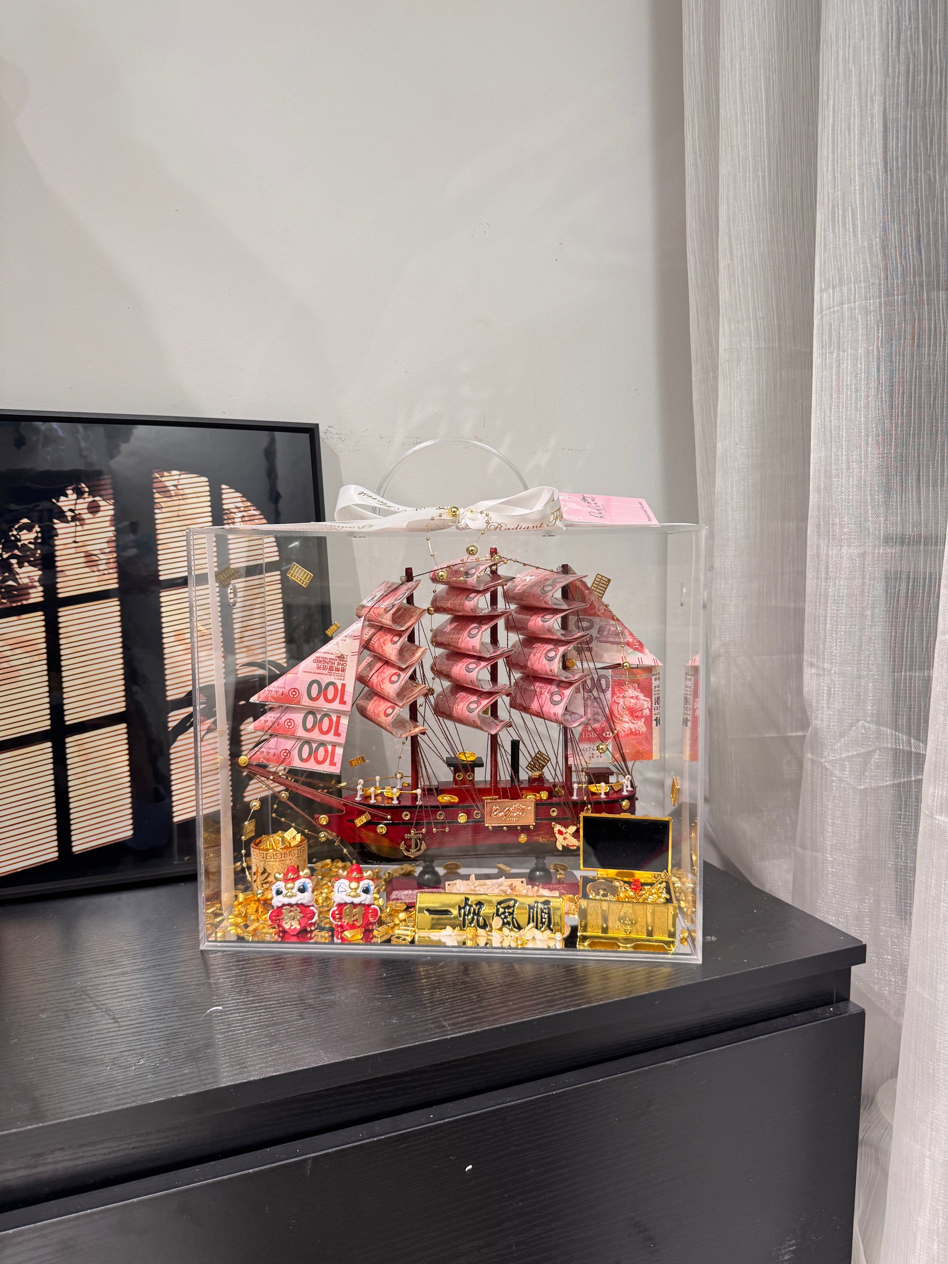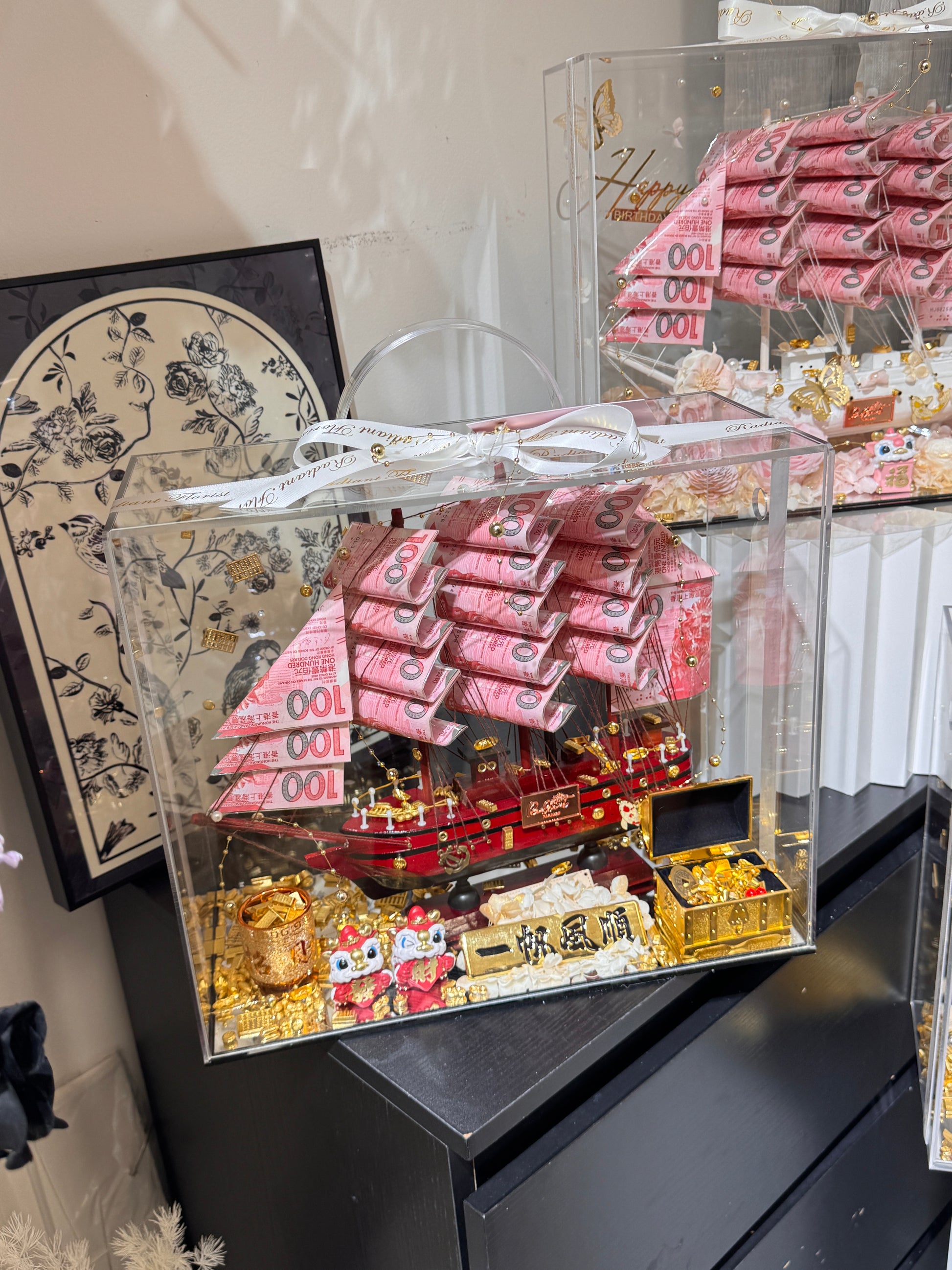普通款🎁 帆船永生花鈔票禮盒|紅色船體&一帆風順牌