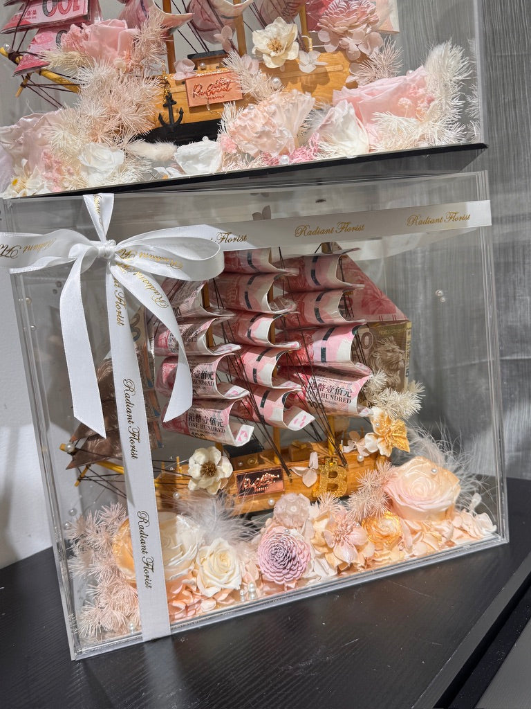 普通款| 順風順水永生花鈔票帆船禮盒🎁單面花花款