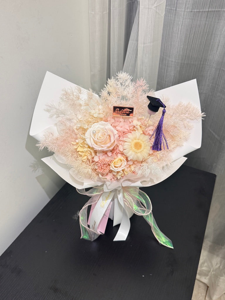 Cozy Love 畢業永生花束 粉黃色