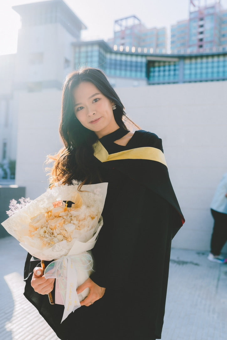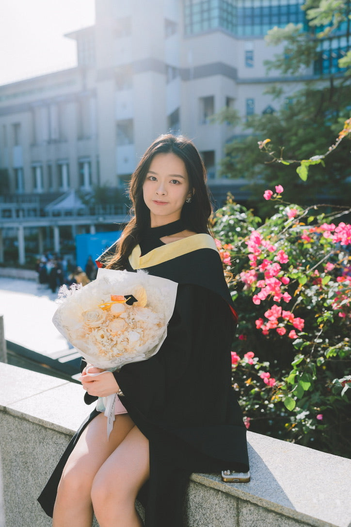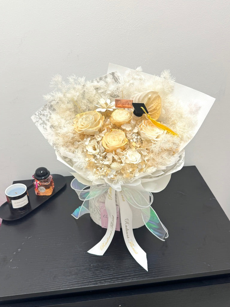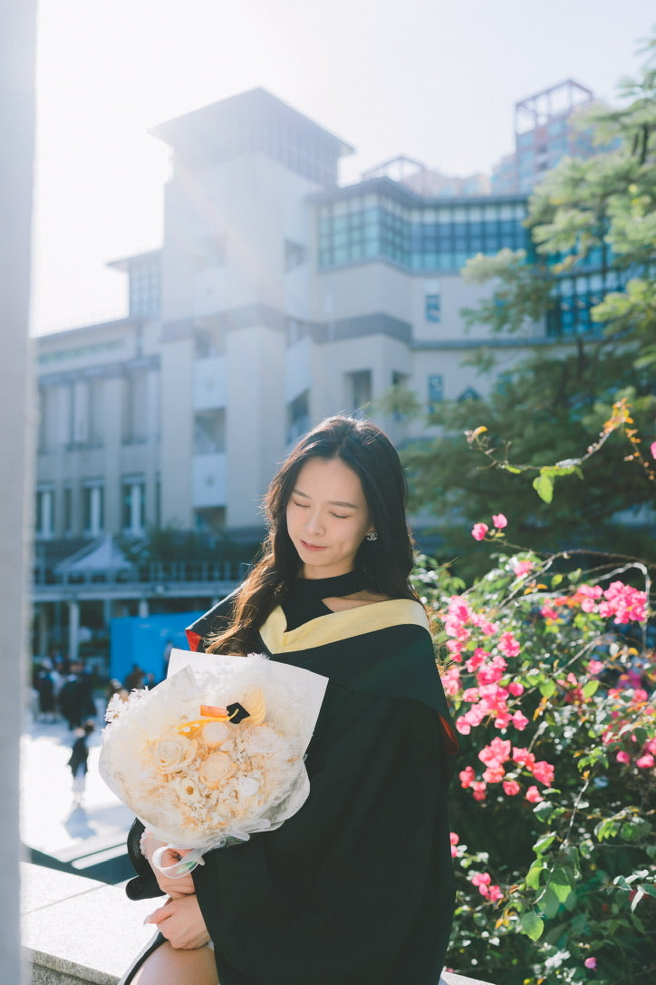 給自己做的畢業花束,選擇了和畢業袍相呼應的金色,拍照好上鏡